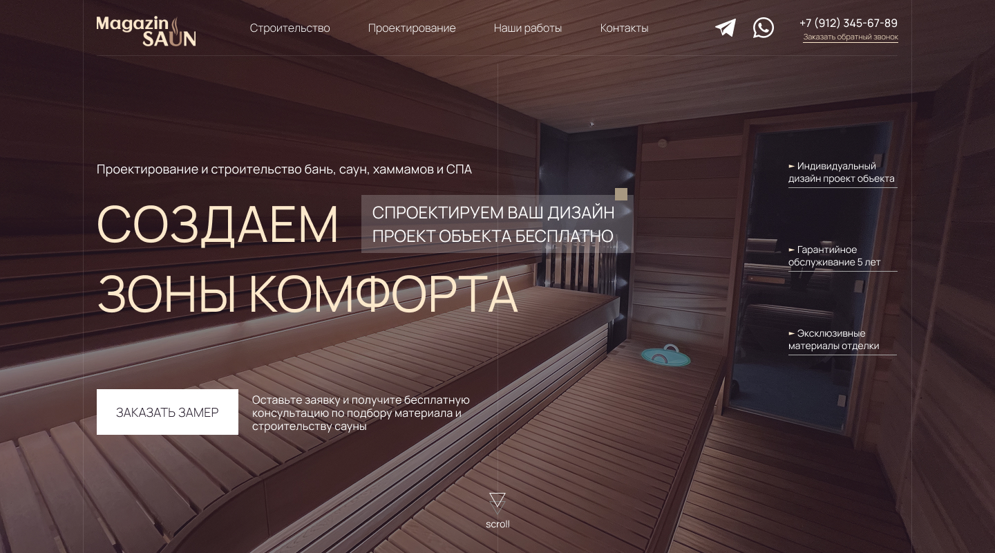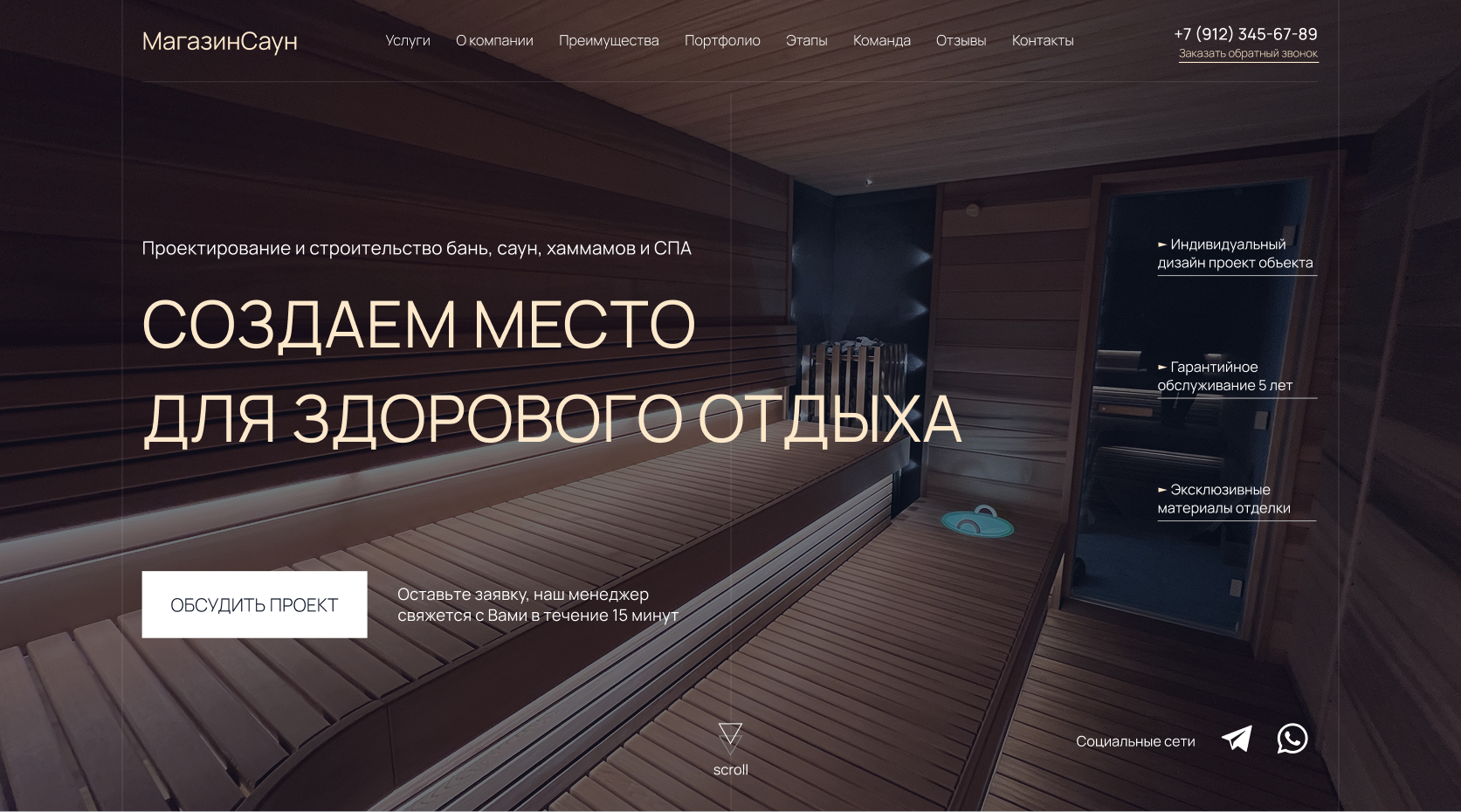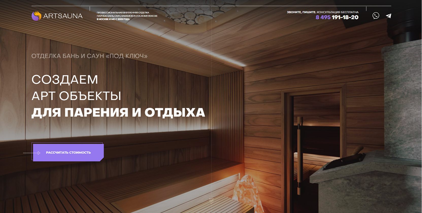 К нам обратился клиент с задачей разработать сайт для запуска контекстной рекламы по услуге «Проектирование и строительство бань и саун»